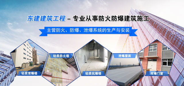 沈阳东建建筑工程有限公司是一家专业从事防火防爆建筑施工的工程公司。稳定可靠的质量、良好的信誉、完善的售后服务赢得了广大客户的信赖与支持。 公司主要从事防火、防爆、泄爆系统的生产与安装。主要产品有防火板、泄爆板,抗爆板,轻质防火墙、轻质泄爆墙,轻质泄爆屋面、轻质抗爆墙、抗爆门等。可为客户提供专业的设计、安装等一体化服务。 多年来,沈阳东建建筑工程有限公司凭借过硬的质量、良好的信誉、合理的价格不断拓展市场,诚挚的希望与新老客户在互惠互利、友好合作的基础上,建立良好关系,共创美好未来!